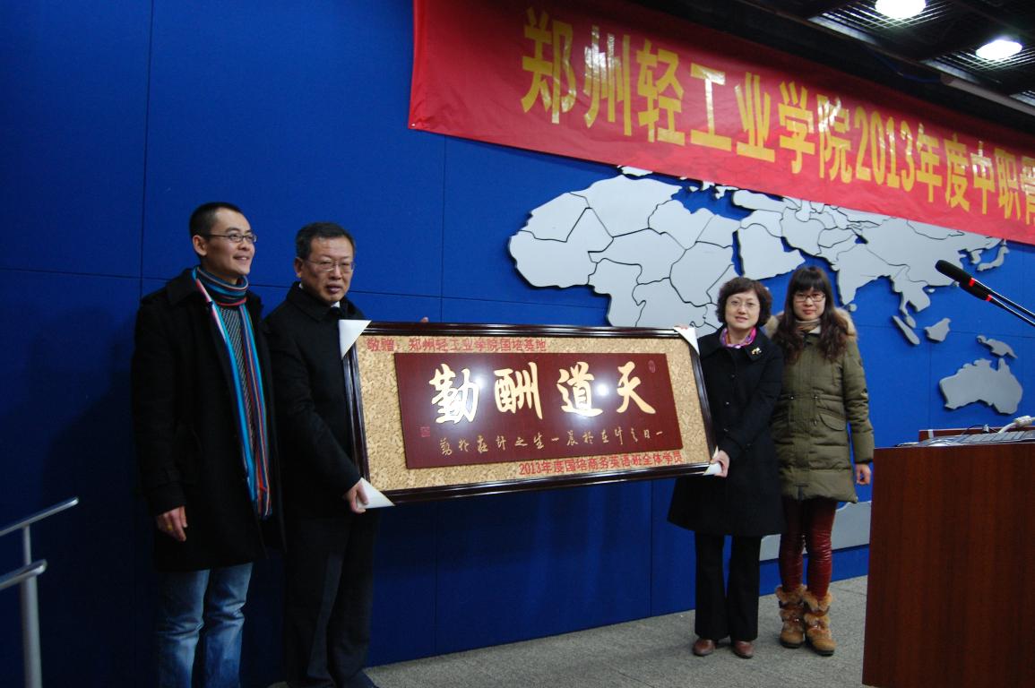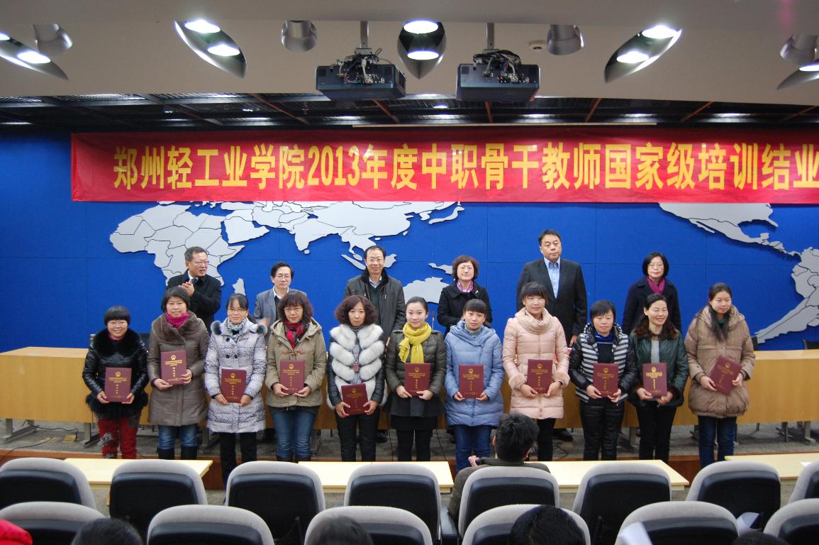 第三党总支戈民书记宣读《郑州轻工业学院全国重点建设职教师资培养培训基地关于2013年度国培学员结业的决定》、《郑州轻工业学院全国重点建设职教师资培养培训基地关于表彰2013年度国培优秀学员的决定》和《郑州轻工业学院全国重点建设职教师资培养培训基地关于表彰2013年度国培优秀班干部、学习优秀奖和文体活动积极分子的决定》。赵继红副校长等为国培学员颁发结业证书,为优秀学员、优秀班干部、学习优秀奖和文体活动积极分子颁发荣誉证书。