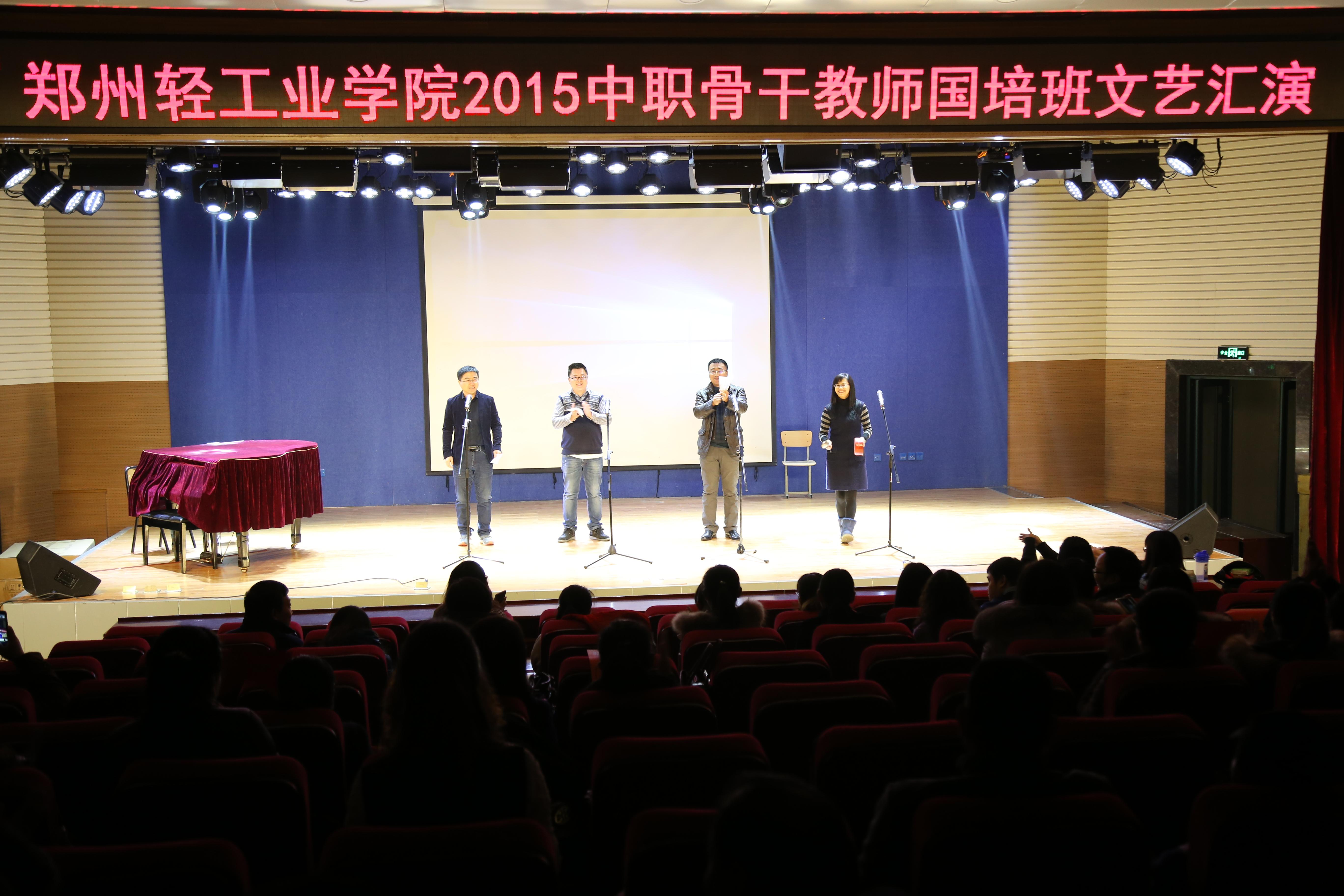 10月23日下午,我校2015年度中职骨干教师国培班文艺汇演在学校演讲厅成功举行。全体国培学员、国培班辅导员、专业班主任、经济与管理学院、体育学院、继续教育学院有关人员参加了本次演出。汇演由来自石家庄市第三职业中专学校的徐亮老师和保定市女子职业中专学校周佳音老师主持。