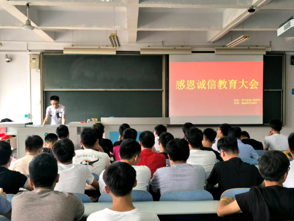 2018年5月29日中午,电气信息工程学院在教三楼804开展2018年生源地助学贷款诚信感恩活动。学工服务中心全体成员以及全体生源地贷款学生参加会议。