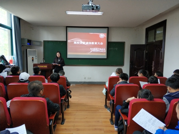 为进一步加强对贷款学生的诚信教育,加深学生对国家助学贷款政策的了解,2018年11月7日,电气信息工程学院在西二楼202召开了国家助学贷款诚信教育大会。负责贷款工作的李灏萱老师,全体贷款学生以及学生工作服务中心全体工作人员参加了此次会议。