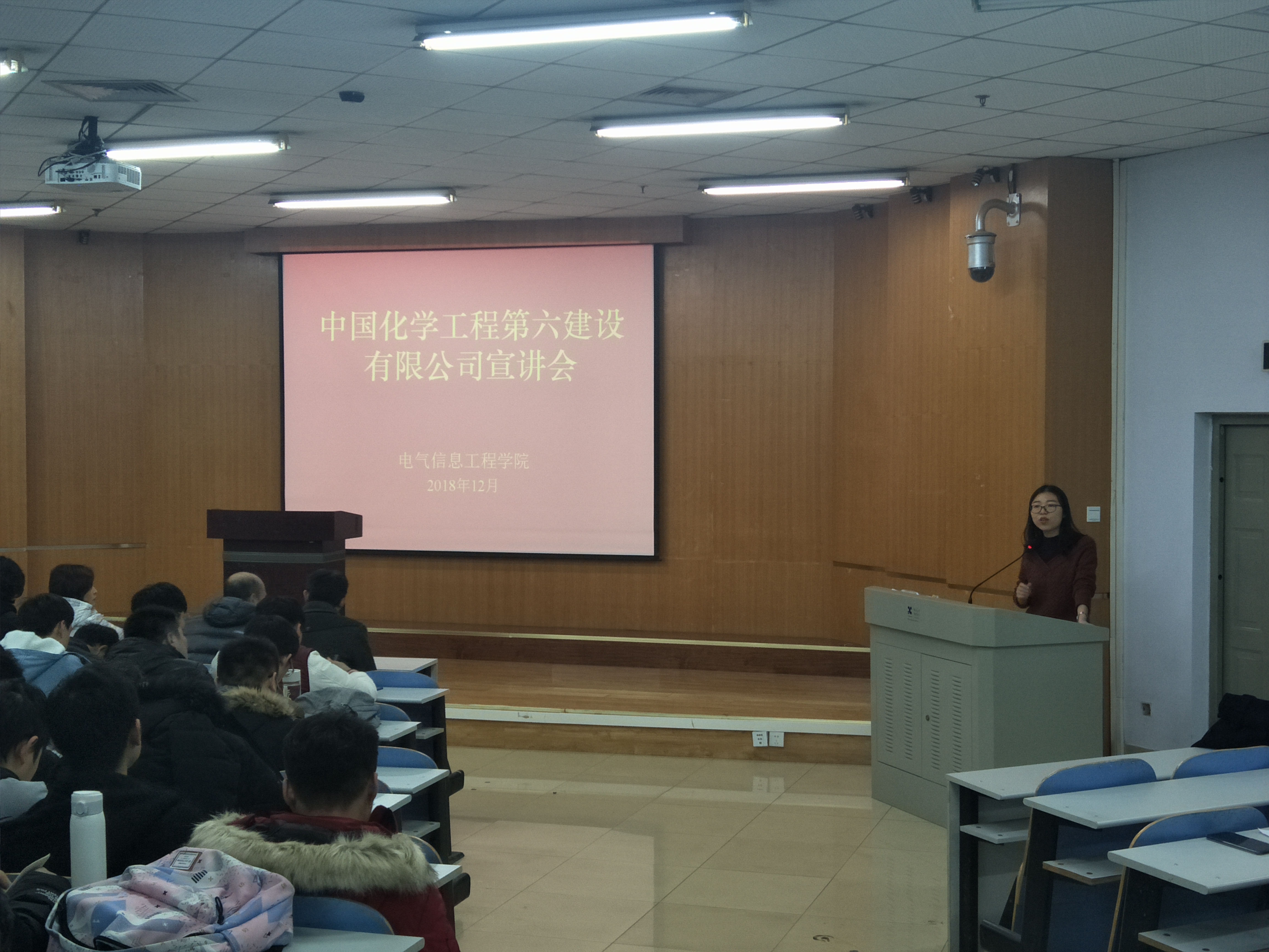 接着,中国化学工程第六建设有限公司人力专员杨女士结合多年工作经历,分享了人力资源管理和职业生涯规划相关经验,为同学们分析了就业形势和求职技巧。杨女士还播放了企业宣传视频,介绍中化六建发展历程、企业组织构成、企业文化、人才政策、福利待遇、晋升机制等,欢迎我院学生到中化六建实习、就业。会后,中化六建负责人还就简历设计、实习选择、求职技巧等对学生的问题进行一对一答疑。