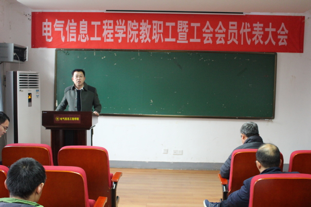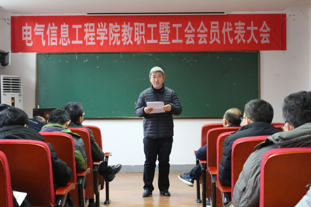 根据学校工会工作和教代会工作有关要求,结合电气信息工程学院的实际情况,电气信息工程学院三届四次教职工暨工会会员代表大会于2019年1月10日下午3:00在西二楼202会议室胜利召开。会议由党总支书记高建奇老师主持。