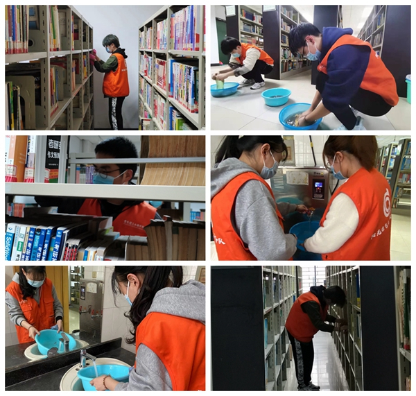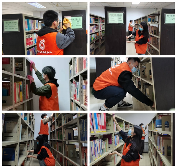 活动开始前,志愿者们先和图书馆值班老师进行了积极的沟通,并领取劳动工具、了解具体整理区域。在负责同学带领下,大家两两分组开始有序工作。活动过程中,为了不影响图书馆里面的同学们学习、阅读,大家都努力保证在轻拿轻放的前提下,做好本次志愿工作。即使工作量大,但无论是书架上需要擦拭的灰尘,还是需要整理的书籍,大家在清理好每一个书架的过程中,都真切地感受到了志愿和奉献的快乐。