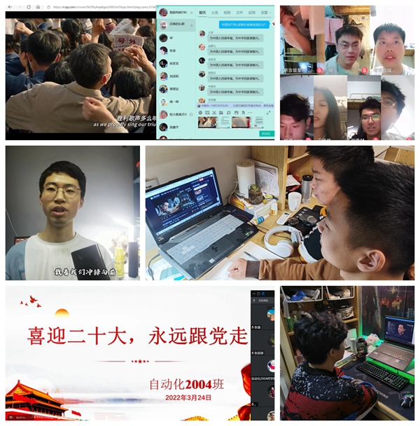 全院各团支部紧扣主题,以班级和宿舍为单位带领同学们参加了红色观影活动,传承红色精神。通过观影让同学们回顾了中国共产党百年奋斗光辉的历程,影片中铿锵的字句让同学们领略了百年时光中孕育而生的希望与担当,也让他们在心中更加坚定了愿以吾辈之青春,护我盛世之中华的宏愿;组织同学们以视频的形式录制了对党想说的话,从同学们微笑诚挚的脸上从一句句“没有共产党,就没有新中国”、“祝党越来越辉煌”中,可以读出同学们对党最深厚的爱意;组织党史竞答,同学们积极开麦抢答,战况激烈,通过学习党史,深层次了解党的光辉历史,使团支部全体成员厚植爱党、爱国、爱社会主义的情感,使红色基因与革命薪火代代相传。活动中一位同学发言:“充分认识幸福都是奋斗出来的,从而以更加坚定的理想信念、更加饱满的奋斗激情,积极投身到学习生活中去,做出新贡献。”