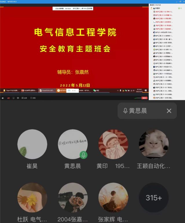 根据学校疫情防控及近期安全管理的相关要求,为做好低年级在校生离校返乡、毕业生文明离校期间学生的安全教育管理工作,5月20日—5月25日,电气信息工程学院以年级班级为单位于线上召开安全教育主题班会,全体学生参加。会议由各辅导员主持。