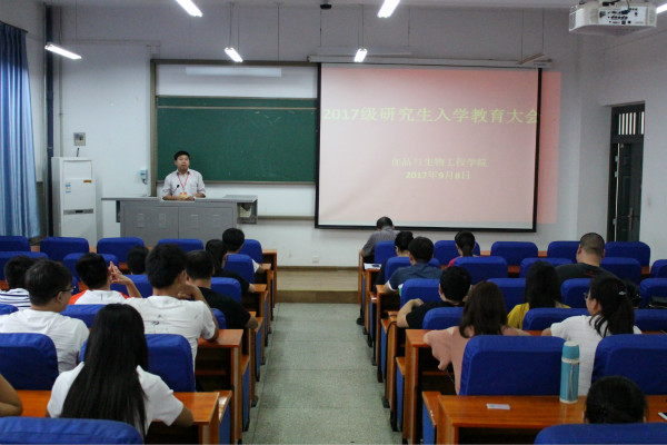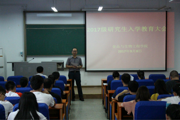 会上,吴占超书记首先对2017级研究生新生的到来表示热烈的欢迎,随后介绍了食工学院的发展历史及目前的基本情况,吴书记指出,食工学院对学生一直是严管厚爱,时刻关注同学们的学习和生活,希望同学们尽快完成角色转变,适应研究生生活,同时告诫同学们严格遵守校纪校规,服从学校、学院安排,不断提升个人安全意识,注重人身财产安全。