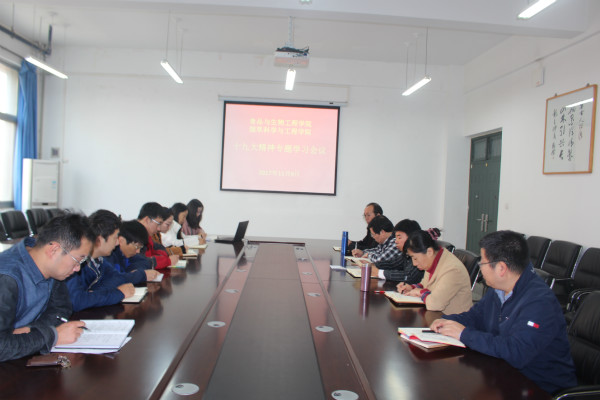 2017年11月9日,食品与生物工程学院党总支召开中心组(扩大)学习会议,专题学习党的十九大精神,进一步把学习宣传贯彻引向深入。学院全体班子成员、各支部书记参加了会议,党总支书记吴占超同志主持学习会议。