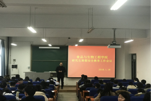 2018年1月18日下午16:00,食品与生物工程学院在食工楼209召开全体研究生寒假安全教育工作会议。会议由刘延奇副院长主持,学院研究生管理办公室全体老师以及全体研究生参加了本次会议。