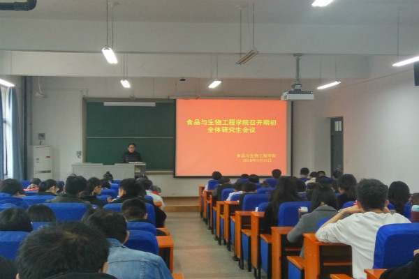 新学期伊始,为确保研究生工作的顺利进行,加强对研究生同学的服务、管理和安全教育,2018年3月15日下午3点,食品与生物工程学院(烟草科学与工程学院)在食工楼209教室召开了期初全体研究生会议,学院研究生管理办公室全体老师及各年级研究生参加了此次会议。