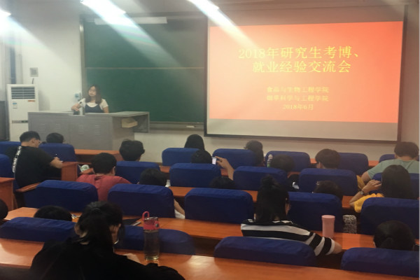 2018年6月6日,食品与生物工程学院(烟草科学与工程学院)在食工楼209室举办了2018届硕士研究生考博、就业经验交流会,为广大研究生未来发展指点迷津。会议邀请了我院2018年考博、就业成功的硕士毕业生代表,与大家分享经历和经验。我院研究生辅导员张陆燕老师、2016级和2017级硕士生参加了此次会议。