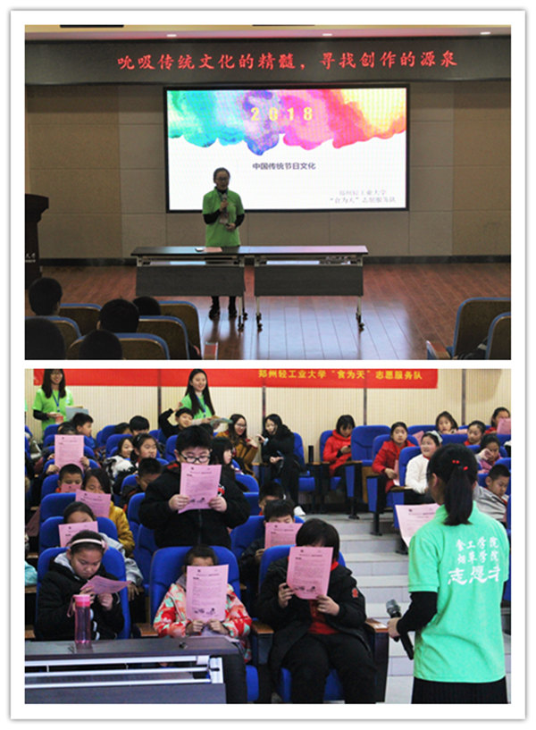 活动共分为两大环节。第一环节是中华民族传统节日——冬至及食品安全知识宣讲。在室外,志愿者们通过KT展板为同学们讲解冬至饮食、除夕饮食以及冬季饮食的注意事项,提醒同学们注重食品安全健康。在室内,志愿者们通过精美的PPT展示、宣传彩页、知识问答小互动等方式向同学们宣传了中国传统节日——冬至的相关知识。志愿者们用图片、小故事、知识问答的互动调动了同学们对中华民族传统节日文化了解的积极性。同学们也纷纷表示渴望去探索更多的传统文化知识,并将自己今天的收获向更多的人宣传。
