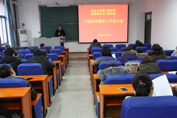 2019110日下午,食品与生物工程学院(烟草科学与工程学院)在食工楼209室召开三届四次教职工代表大会。大会由党总支书记张阳同志主持。