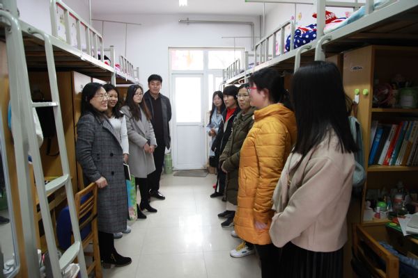 新学期伊始,为了解学生思想动态,强化学生安全意识,2月28日下午,食品与生物工程学院开展宿舍走访暨安全自查工作,学院党总支副书记李英梅及全体辅导员深入宿舍走访看望学生。