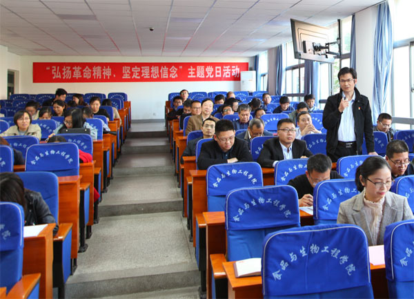 为扎实推进“不忘初心、牢记使命”主题教育,提升教育效果,2019年10月31日,食品与生物工程学院党总支在食工楼209开展“党建讲堂”主题党日活动,活动以“弘扬革命精神、坚定理想信念”为主题。学院班子成员,全体教工党员参加了本次活动,毛多斌副校长对活动进行了现场指导。
