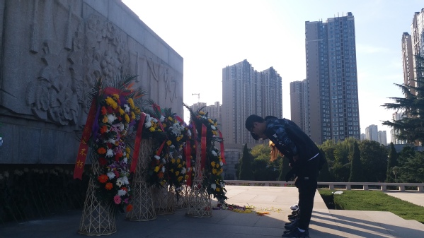 首先,同学们怀着崇敬之情来到革命先烈纪念总碑前,列队整齐,由党员代表致悼词,全体党员向革命先烈默哀三分钟,敬献鲜花,表达对烈士深深的缅怀。随后,大家来到中原英烈纪念馆,依次进入了工人运动的开展与大革命浪潮纪念厅、星火燎原土地革命战争厅、抗日战争厅、解放战争厅等10多个展厅,通过观看大量珍贵的图片、实物等资料,再现了当年战士们保家卫国,浴血奋战,奋不顾身的战争场面。最后,在支部宣传委员范刘敏同学的带领下,全体同学庄严宣誓。同学们深刻感受到今天的幸福生活来之不易,纷纷表示要继承革命先烈遗志,弘扬革命精神,珍惜当下,不忘初心,勇于担当,为实现中华民族伟大复兴的中国梦而不懈奋斗。