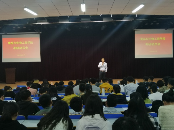 为进一步加强2017级学生对考研相关信息的了解,帮助同学们尽快明确学习目标,规划学习计划与方向,食品与生物工程学院于11月1日中午在活动中心208举办了考研动员会。副院长刘延奇教授,食品教研室葛珍珍博士、烟草教研室李萌博士、生物教研室张志平博士、辅导员王楠以及2017级全体学生参加了此次会议。