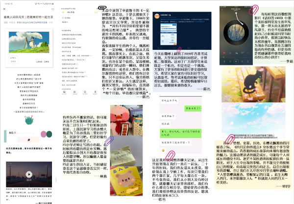 在本次活动中,同学们采用图片或视频进行分享,展示在学院微信公众号上。同学们或分享自己家乡的照片,让更多的同学认识自己的家乡;或介绍自己最近正在阅读的书籍、听的音乐、观看的影视作品,展现内心世界的丰富情感;或分享与好朋友之间发生的趣事和之前一起游玩时的风景照片,赞美友情友谊;或分享在家中翻出来的老旧物品,感叹岁月如梭……这些精彩的分享,展示了大家精神世界的丰富和身处物质世界的缤纷多彩。