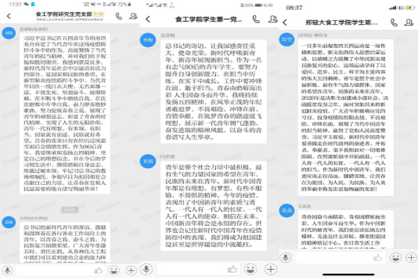 为进一步加强学生党员的思想建设,教育引导广大党员不忘初心使命,强化责任担当,5月8日,食品与生物工程学院各学生党支部开展“时政热点党员谈”系列活动—学习五四寄语精神,活动采用自主学习和线上交流相结合的方式,学院全体学生党员参加了本次活动。