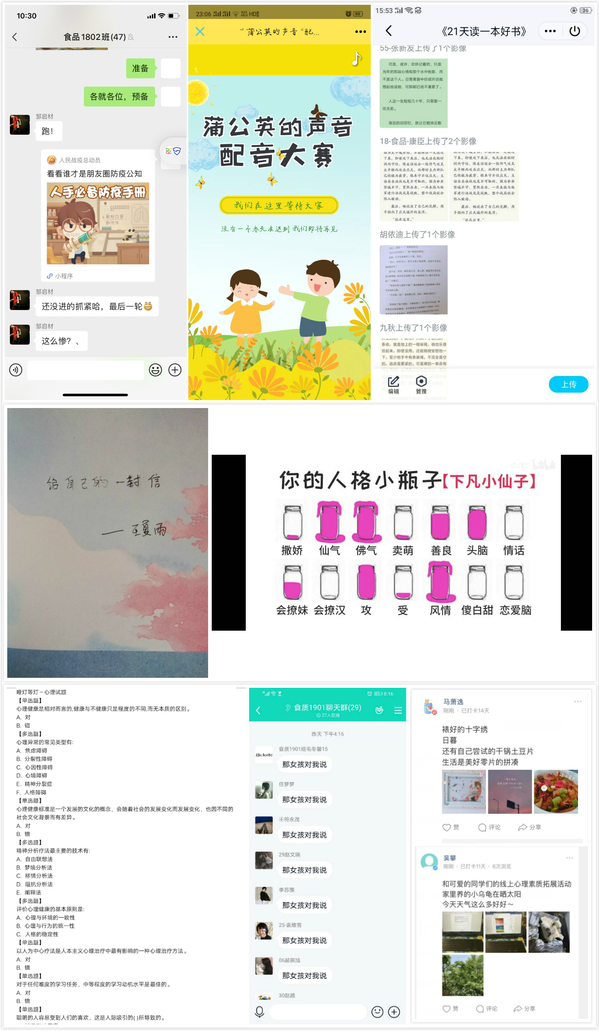 为进一步落实大学生疫情期间心理健康教育工作,提高大学生的心理健康素质,5月15日-31日,食品与生物工程学院组织2018级、2019级各班陆续开展线上“蒲公英项目”心理素质拓展活动。
