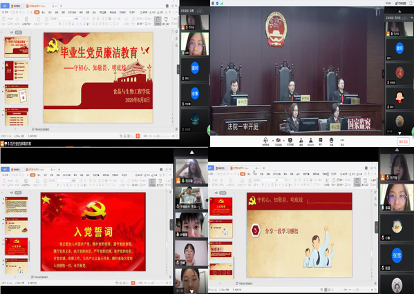 面向全体2020届毕业生党员开展题为“守初心、知敬畏、明底线”的廉洁教育主题活动,活动共分为学习一次《准则》和《条例》、观看一部廉洁教育专题片、学习一位廉洁典型模范、重温一遍入党誓词、分享一段学习感悟五个环节,旨在引导党员坚定理想信念、强化党员意识,学习先进典型,真正筑牢拒腐防变的思想道德防线。活动结束后,毕业生党员在学习强国平台展开了热烈讨论,纷纷表示在今后的学习和工作中,将牢记党员身份,强化自律意识,提升党性修养,做到自重、自警、自省、自励,在平凡岗位上做出不平凡的业绩。
