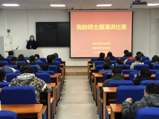 为增强广大研究生职业生涯规划意识,促进研究生自觉规划硕士阶段学习目标,营造浓厚的学习氛围,11月20日晚七点半,食品与生物工程学院在食工楼209教室举办第七届“我的硕士路”主题演讲比赛。学院党委副书记李英梅、各年级辅导员老师及全体2020级研究生参加了此次活动。比赛正式开始前李英梅副书记致词。