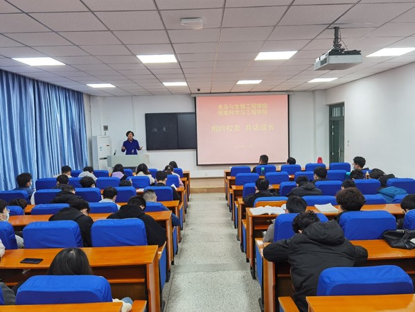 交流会上,邓静校友结合自身经历,向同学们介绍了食品行业的发展现状,引导同学们树立正确的专业认知,将专业理论知识与实际操作结合,用自己所学专业知识贡献社会。最后,邓静校友向同学们提出几点建议:一要与图书馆“交朋友”,多读好书,拓宽自己的视野;二要与操场“交朋友”,注重锻炼身体,提高身心素质;三要多与同学“交朋友”,在发现问题和解决问题过程中,培养团队协作能力。