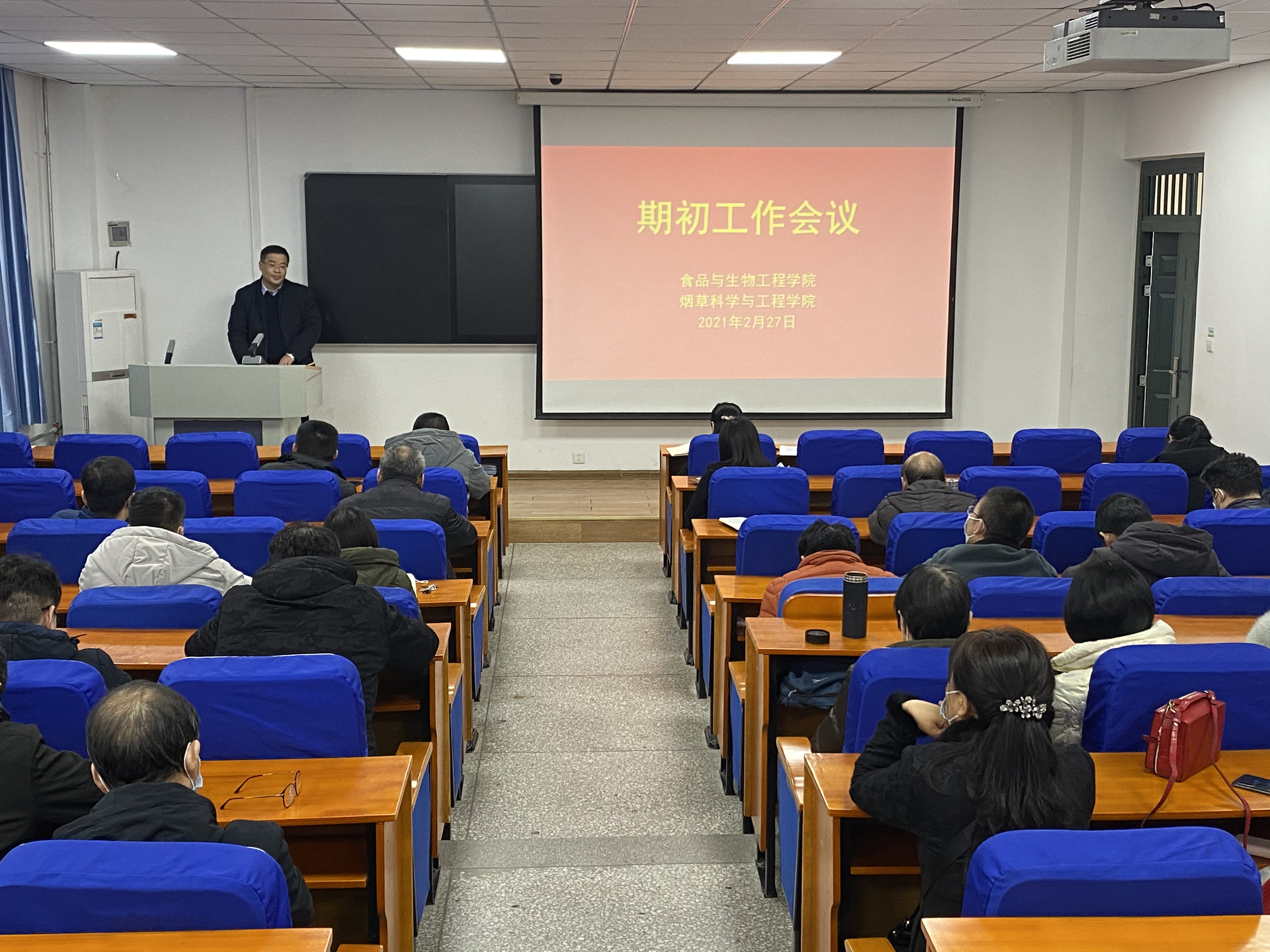 为安排部署新学期期初主要工作,传达学校2021年工作会议精神,食品与生物工程学院(烟草科学与工程学院)分别召开班子成员和全体教职工期初工作会议。