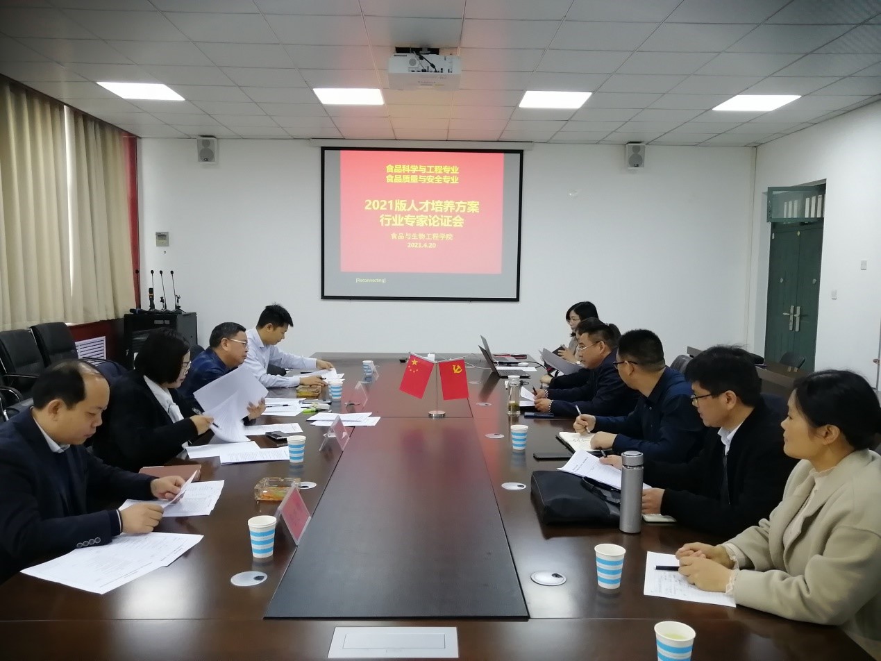 为进一步提升2021年本科人才培养方案修订工作的科学性和规范性,深化人才培养模式改革,提高人才培养质量,4月20日,食品与生物工程学院(烟草科学与工程学院)在食工楼401召开食品科学与工、食品质量与安全专业2021版人才培养方案修订行业企业专家论证会,河南省食品科学技术学会秘书长王瑞国教授级高工、河南链多多食品有限公司总经理赵慧娟高工、郑州三全食品股份有限公司研发总监冯志强高工、河南省市场监督管理局食品生产处余汉东主任等专家应邀出席,副院长张华主持会议,食品科学与工程、食品质量与安全系系主任和教师代表参加了会议。