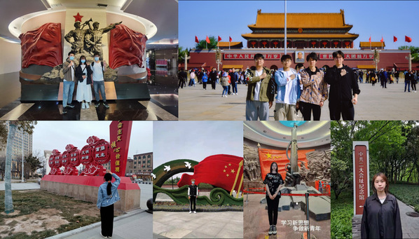 百年恰是风华正茂,全国上下通过各种形式庆祝百年华诞。本次实践活动以学生假期返乡出游为契机,组织学生红色打卡,就地参观红色景点,聆听红色故事,实地感悟红色历史,深切领悟红色精神。有的同学来到上海中共二大会址纪念馆,学习中国共产党早期历史;有的同学来到南昌八一起义纪念馆,了解中国共产党独立领导革命武装斗争、创建人民军队的光辉历史;有的同学来到郑州二七纪念塔,了解中国共产党领导工人运动的历史;有的同学来到天安门广场,感受庄严而又神圣的升旗仪式...也有同学在喜迎百年华诞的宣传栏前合影留念,庆祝中国共产党成立100周年。同学们纷纷表示,对比国外复杂严峻的疫情形势,国人却可以在国内自由出行,感受到“五一”假期浓浓的节日气氛,这一切首先要感谢党的坚强领导取得了疫情防控胜利;我们青年一代要坚定不移跟党走,牢记习近平总书记在五四青年节前视察清华大学时的重要讲话,树立远大理想,实学实干,让青春在不懈奋斗中绽放绚丽之花。