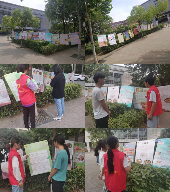 本次活动由“食为天”志愿服务队联合“食以安为先”社会实践课程组共同开展。活动前期,在“食为天”志愿服务队老师们的指导下,实践课程班全体同学分成12个小组,围绕食品安全和饮食文化两大主题分别查找资料,选取不同方向,设计制作宣传海报。6月7日中午,志愿者们在科学校区清苑餐厅门口布置完毕,24页宣传海报整齐悬挂,宣传内容涉及我国传统饮食文化和节日食俗,常见的各类食品安全问题以及安全注意事项等。6月7日-13日,志愿者们每天在宣传点进行现场宣传讲解,在饮食文化类海报前,围绕我国八大菜系及少数民族及地方特色美食等,从食品文化的由来、特点到代表性特色菜品,循循善诱的语言吸引同学们驻足听讲,让大家深刻感受到我国传统饮食文化的魅力,不少同学还分享了他们家乡当地的特色美食,热情邀请同学们到他们的家乡品味美食。在食品安全宣传海报前,志愿者为同学们讲解了食品安全相关知识,带大家了解食品添加剂、食品包装材料、微生物与食品安全,转基因食品与安全,食品搭配与营养等,还讲解了黄曲霉素与亚硝酸盐等导致食物中毒的常见因素,呼吁大家正确看待现代食品,科学甄别常见食品安全问题,真正做到健康饮食,安全饮食。