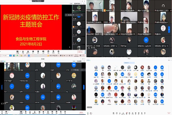 为扎实做好学生疫情防控工作,食品与生物工程学院迅速行动、积极应对,8月1日晚至8月2日上午,分别线上召开疫情防控辅导员工作会议,学生新冠肺炎疫情防控主题班会,第一时间传达学校疫情防控工作精神,严把组织领导、宣传引导、严防严控等环节,以实际行动守护学生身心健康。