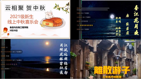 一年逢好夜,万里见明时。为庆祝中秋佳节,增进师生情谊,9月20日晚,食品与生物工程学院通过直播的形式开展“云相聚・贺中秋”2021级新生线上中秋喜乐会,学院全体辅导员老师、学生会负责人员和2021级全体新生参加本次活动。