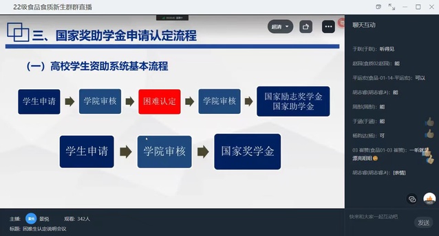 为全面普及国家资助政策知识,进一步落实好国家资助政策宣讲“两节课”工作,9月7日下午,食品与生物工程学院开展了国家资助政策“两节课”宣讲活动,宣讲会由学院资助专项老师蔡晨阳主讲,2022级新生辅导员及全体新生参加会议。