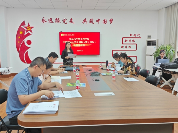 近日,食品与生物工程学院在食工楼252会议室举办中国国际大学生创新大赛(2024)院级选拔赛。学院邀请各系(中心)教师代表、创新创业专职老师担任本次选拔比赛评委。