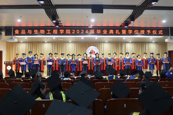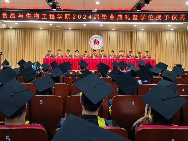6月13日中午,食品与生物工程学院在科学校区逸夫图书馆学术报告厅隆重举行2024届毕业典礼暨学位授予仪式。学院领导班子、专业负责人、导师代表、辅导员老师、全体毕业生参加了典礼。典礼由学院党委副书记李英梅主持。