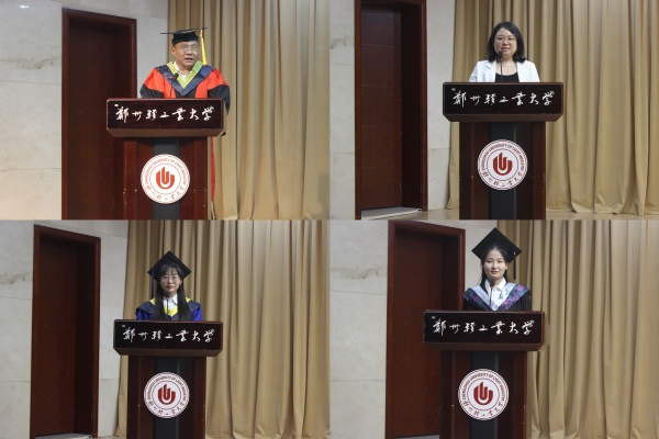 皇甫露露、陈鸣鸣分别代表研究生毕业生、本科毕业生发言。她们回顾了自己在轻大学习和生活中的种种收获,表达出对母校的留恋、感恩与不舍,表示将以更加坚定的信念去迎接未来的机遇与挑战,怀抱喜悦与感恩继续出发,创造更加辉煌灿烂的人生。教师代表朱莹莹老师发言,深情回顾四年来与同学们相处的点点滴滴,勉励同学们在未来的人生中持续努力,坚持不懈,敢想敢做敢为,肩负起行业发展的重任,不断追求卓越,彰显青春风采。