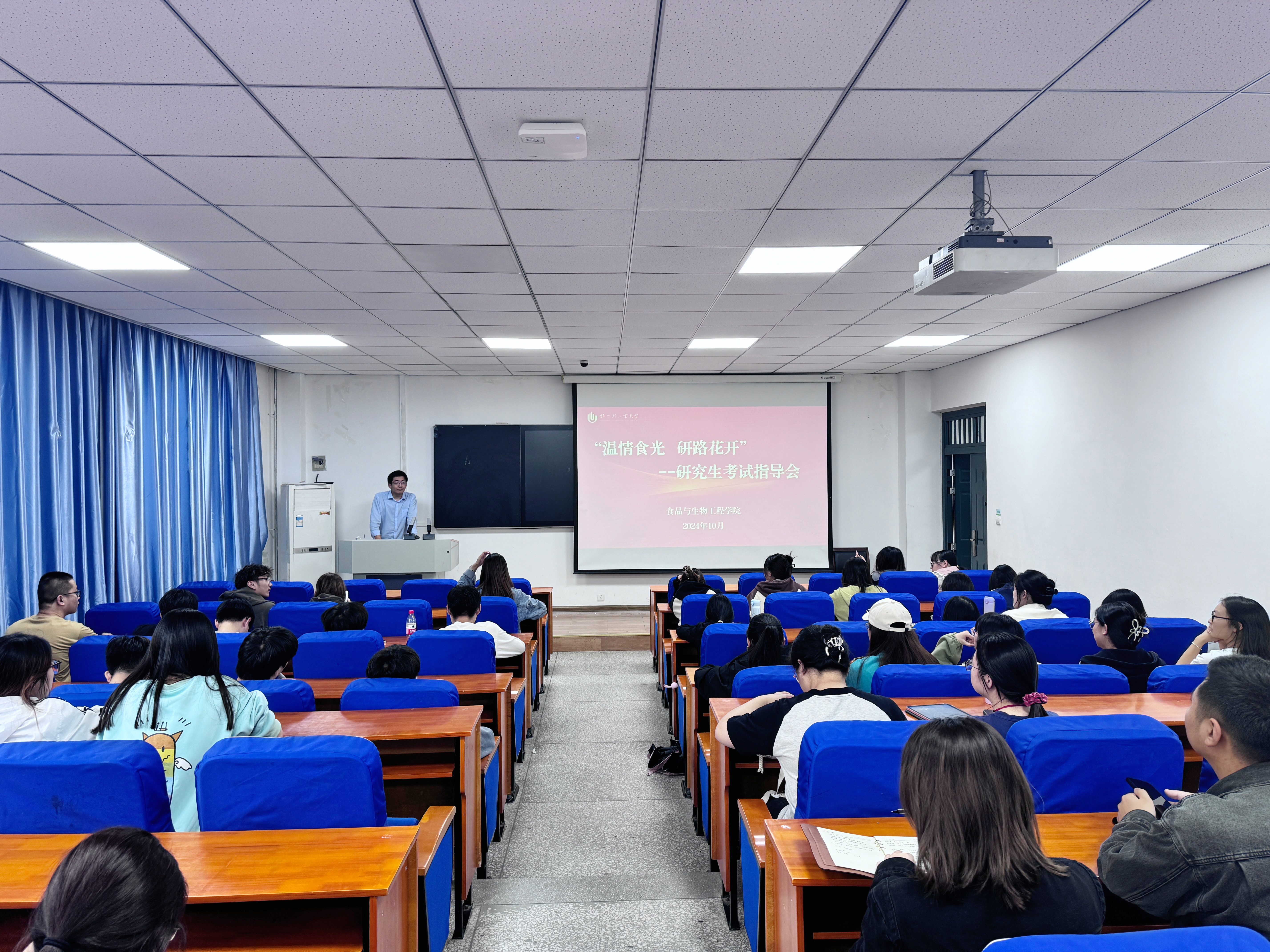 为进一步帮助学生明晰研究生报考方向,为考研同学提供精准有效指导,在2025年全国硕士研究生招生考试报名前夕,食品与生物工程学院组织召开研究生报考指导会暨考生研情分析会,毕业班辅导员、就业专职老师、2025届全体考研学生参会。