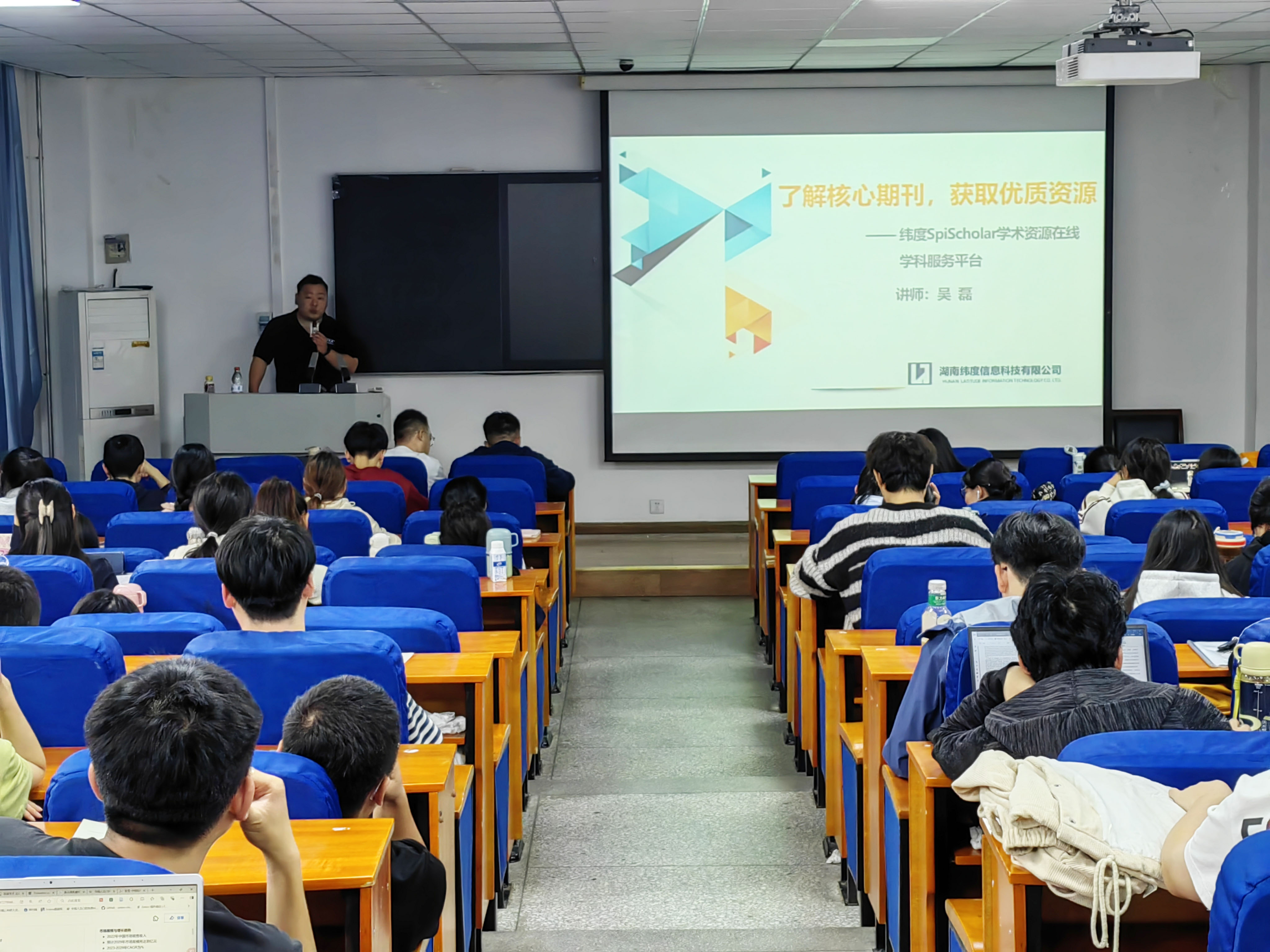 培训中,吴磊老师详细介绍了我校图书馆学科服务平台的设置栏目,涉及学术动态、会议预告、学科分析、学科期刊、免费资源、开放课程、学术成果、专家学者等多个方面。重点通过Spischolar学术资源向同学们展示了搜索课题研究前沿、发现研究创新点、快速获取全文以及评价期刊学术影响力等实用功能,便于查找期刊、投稿发文。通过培训,同学们对快速获取信息资源的路径和方法有了一定的掌握,部分教师和同学就文献检索权限、数据库使用等具体问题与吴老师进行深入探究。