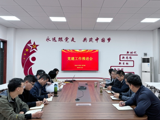为深入学习贯彻习近平总书记关于党的建设的重要思想和党的二十届三中全会精神,进一步推进党建“双创”工作,全面提高党建工作质量,10月23日,食品与生物工程学院召开党建工作推进会,学院党委委员、各支部书记参加会议。会议由学院党委书记张阳主持。