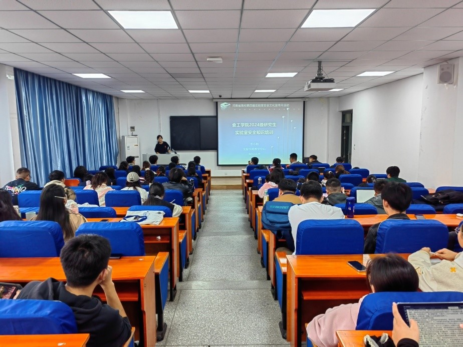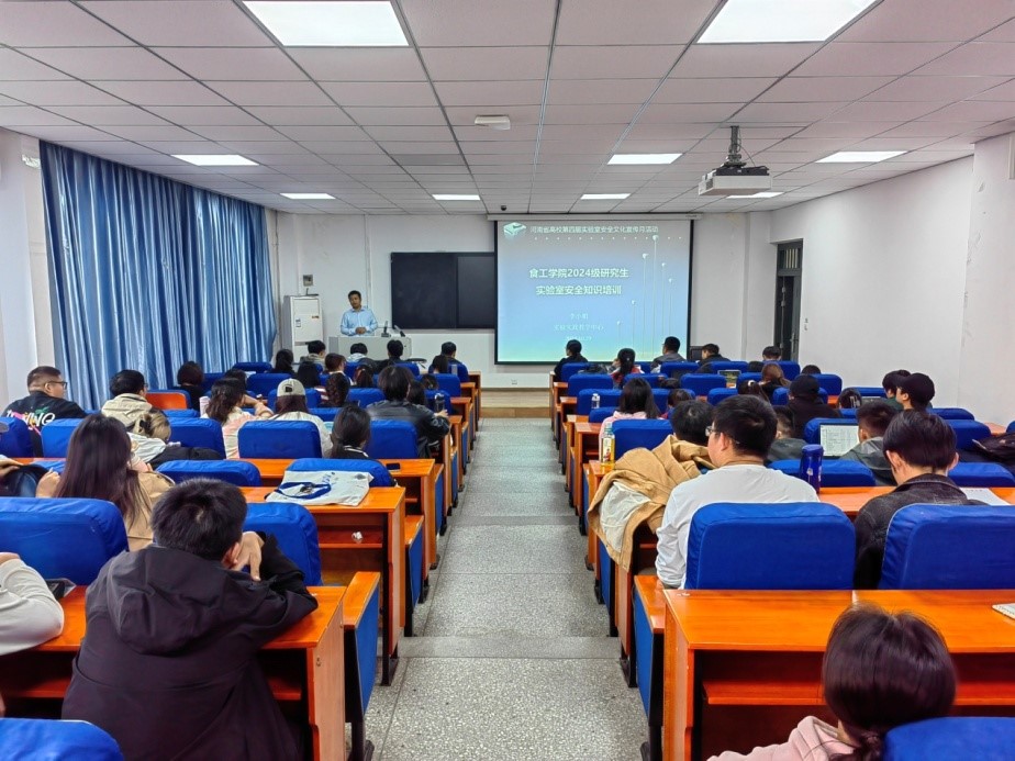 为深入贯彻习近平总书记关于安全生产的重要论述和重要指示精神,推动落实《关于开展“河南省高校第四届实验室安全文化宣传月”活动的通知》(教办科技〔2024〕287号)文件要求,配合开展18新利直播 2024年度“实验室安全文化宣传与建设月”系列活动。10月29日下午,食品与生物工程学院组织开展了实验室安全知识培训专题讲座,旨在不断增强师生对实验室安全主题的思考和关注,营造“人人要安全、人人重安全”的良好氛围。培训会由实验与实践教学中心主任胡晓龙主持,由李小娟老师主讲,实验中心教师和我院2024级全体研究生参加了此次培训。