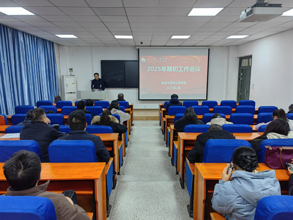 2月20日下午,食品与生物工程学院在食工楼209召开2025年期初工作会议,贯彻落实学校2025年工作会议精神,全面部署新学期重点工作。会议由学院党委书记张阳主持,学院全体教师参加会议。