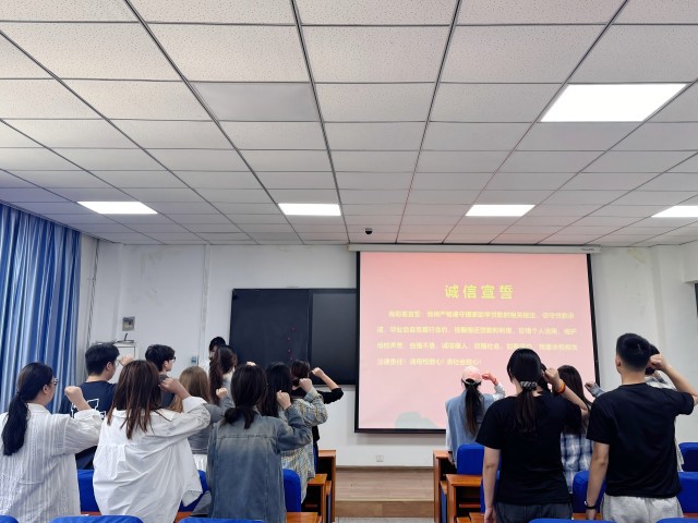会上,蔡晨阳向同学们发放了《国家助学贷款还款流程》,详细介绍了国家助学贷款还款流程及注意事项,重点围绕还款计划书、毕业确认、个人信息完善和贷款展期等方面就如何进行讲解。同时,结合典型案例向同学们讲述了贷款逾期对个人征信的影响和不良后果,并提醒同学们要预防诈骗,警惕不法分子利用贷款信息进行诈骗,远离不良贷、套路贷等。最后,蔡晨阳带领全体贷款毕业生进行诚信宣誓,她指出,诚信是为人之道,是立身处世之本,希望大家作为新时代青年,要有强烈的诚信意识,树立良好的诚信之风,为母校争光,为社会添彩。