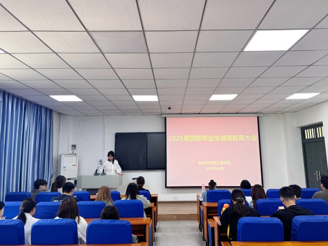 为进一步加强毕业生诚信感恩教育,推进学院贷款毕业生相关工作的顺利开展,近日,食品与生物工程学院在食工楼209教室召开了2025届贷款毕业生诚信教育大会,学院资助专项老师蔡晨阳和全体贷款毕业生参加了此次会议。