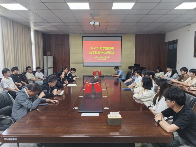 为了进一步加强教学过程管理,提高教学质量。食品与生物工程学院于4月24日在211会议室召开了2024-2025学年第二学期期中教学检查教师座谈会和学生座谈会。学院班子成员、专业主任、学生代表、学院督导组和教师代表参加了座谈。座谈会由副院长陶静主持。