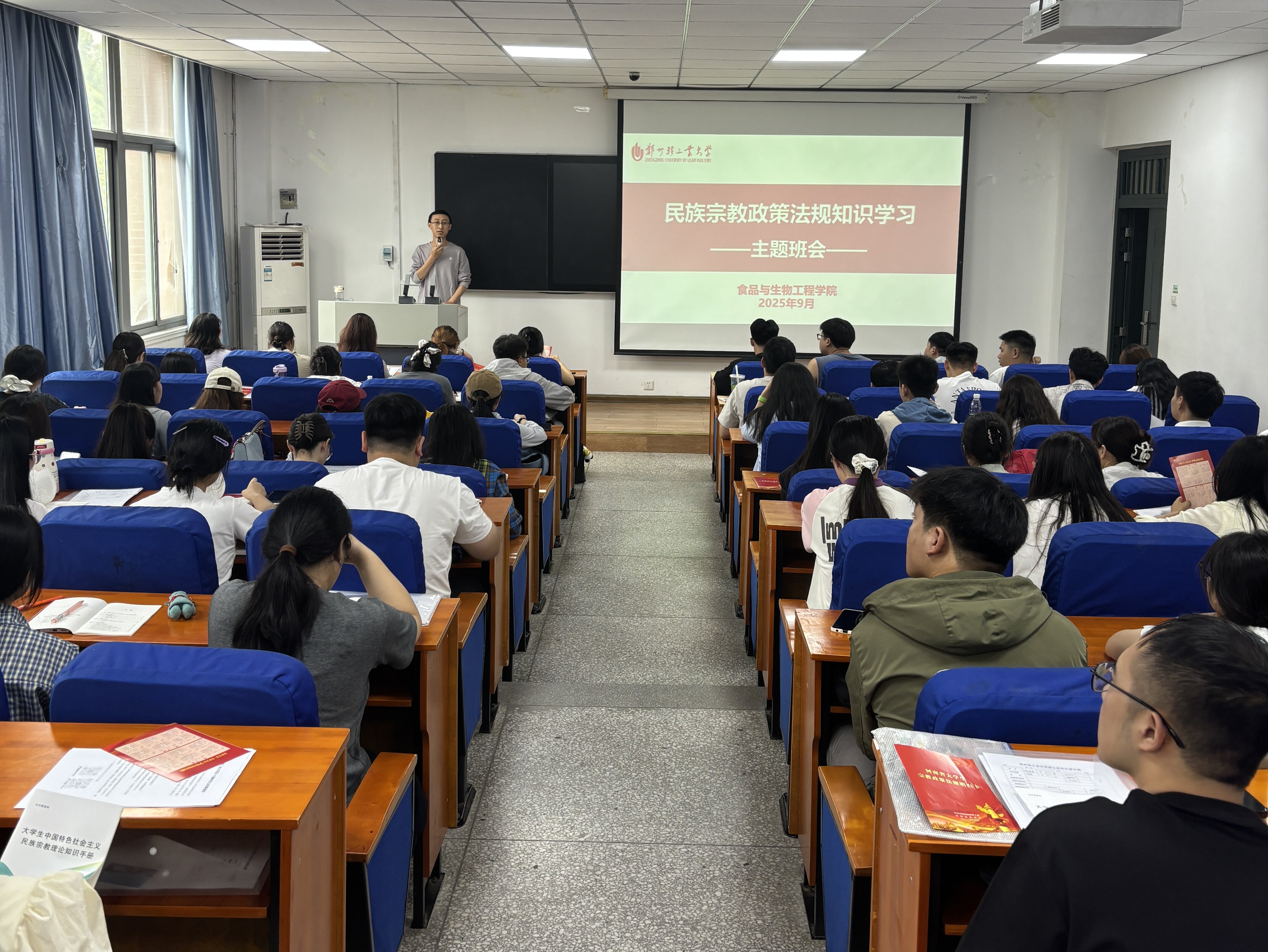 为切实加强中国特色社会主义民族宗教理论、党的民族宗教政策和国家有关法律法规的宣传教育,进一步铸牢中华民族共同体意识,9月5日,食品与生物工程学院开展2025级研究生民族宗教政策法规知识学习主题入学教育,新生辅导员及全体2025级研究生参加活动。