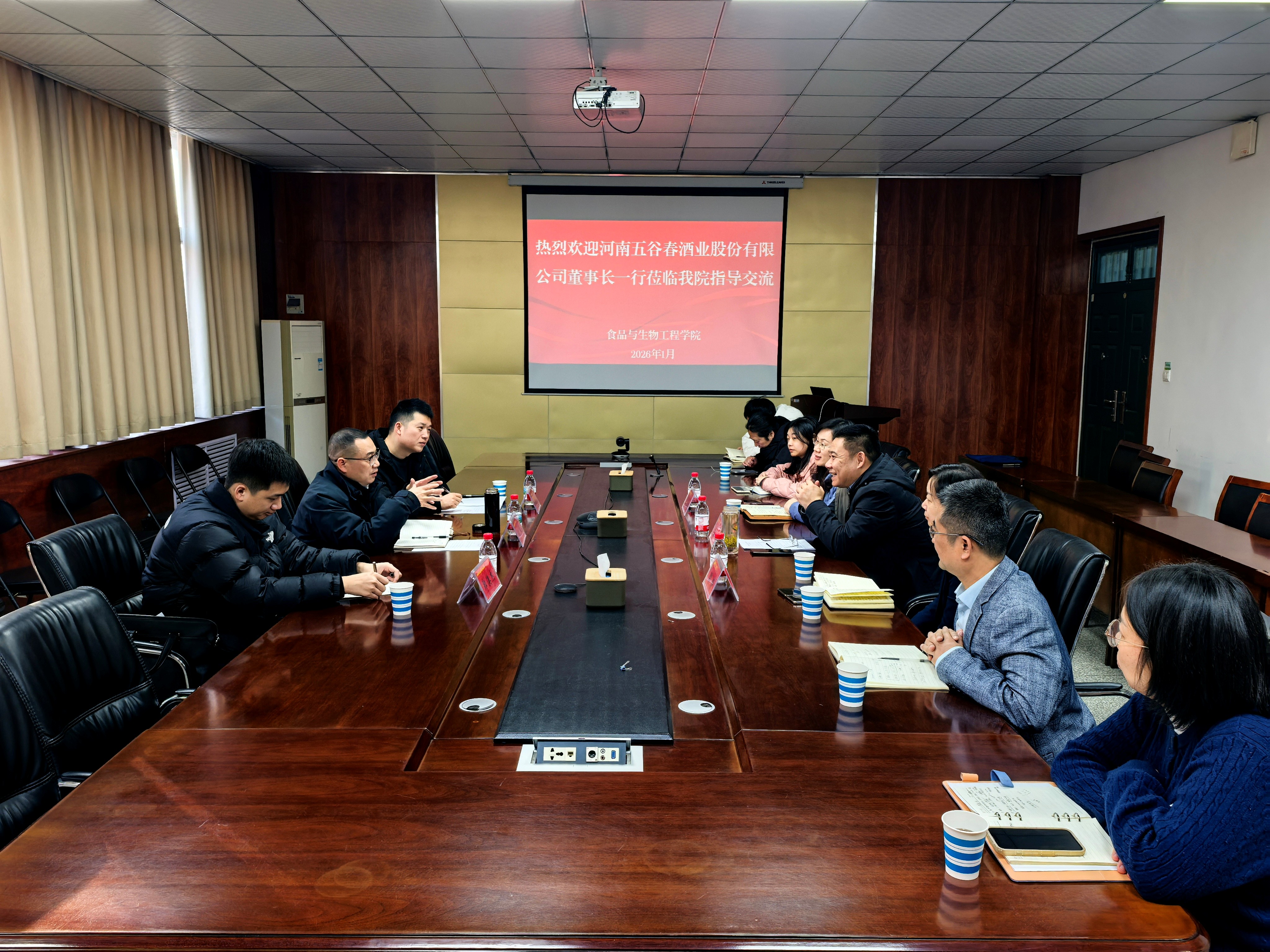 1月8日上午,河南五谷春酒业股份有限公司董事长郑伟一行来我院调研交流。双方围绕科技赋能产业、促进学生就业及人才战略合作等议题展开座谈。学院院长张华、副院长陶静、副书记李英梅出席会议,酒类酿造与品评技术负责人及相关专业教师代表参会。