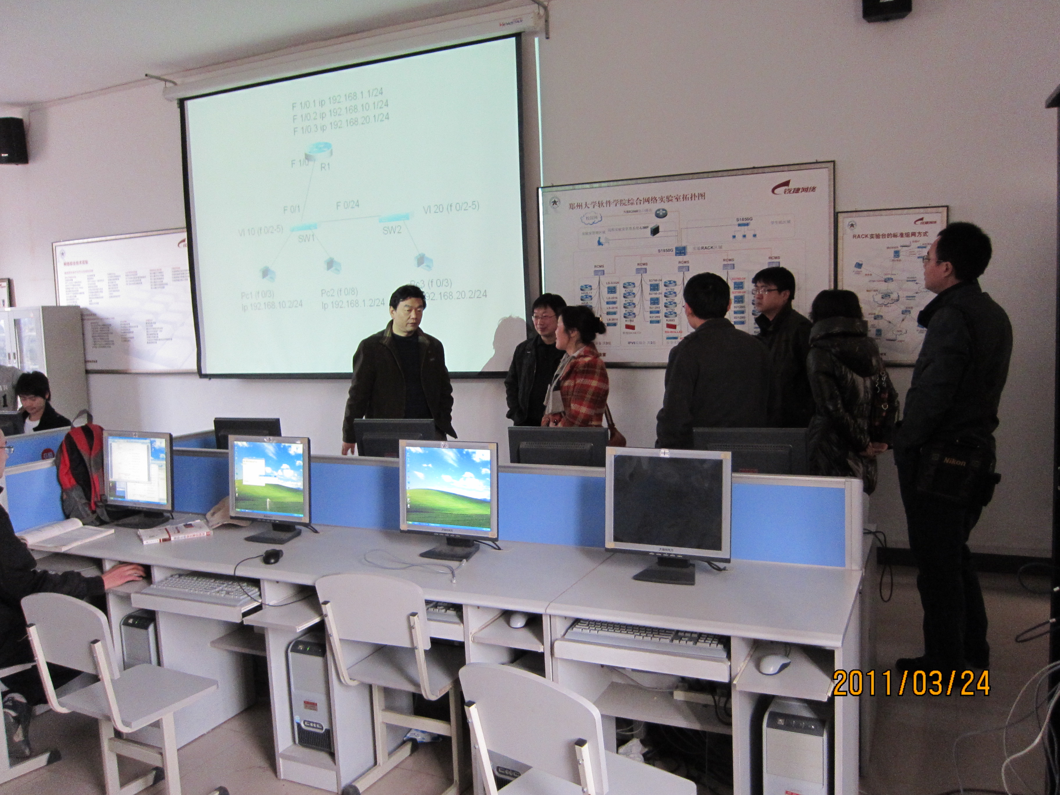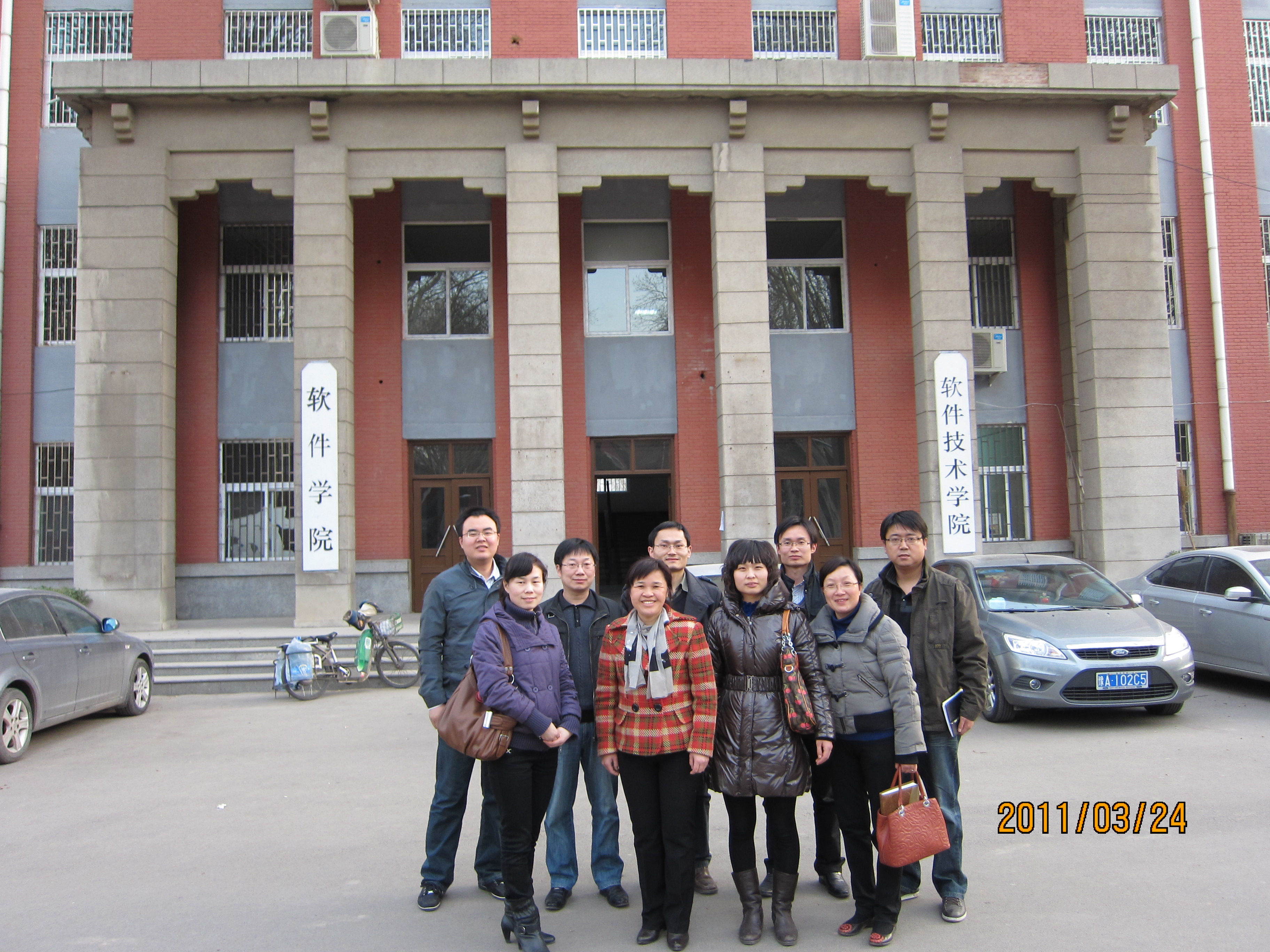 为了进一步建设好郑州轻工业学院软件学院,提高教学质量,培养“IT卓越工程师”,提升软件学院的管理水平,在院长戚俊清教授的鼓励和支持下,副院长邓璐娟教授、副院长宋胜利副教授、软件学院教研室主任梁树军、软件学院实验中心主任申红雪、软件学院办公室负责人马欢等多位老师于2011年3月24日到郑州大学软件学院进行走访学习和调研,双方领导和老师在一起进行了热烈的座谈和讨论,互相交流了人才培养模式、实习实训基地建设、实验室建设和管理、学生思想工作管理、教务管理等方面的经验,特别是向郑大软件学院学习了不少符合软件学院特色模式的管理经验。