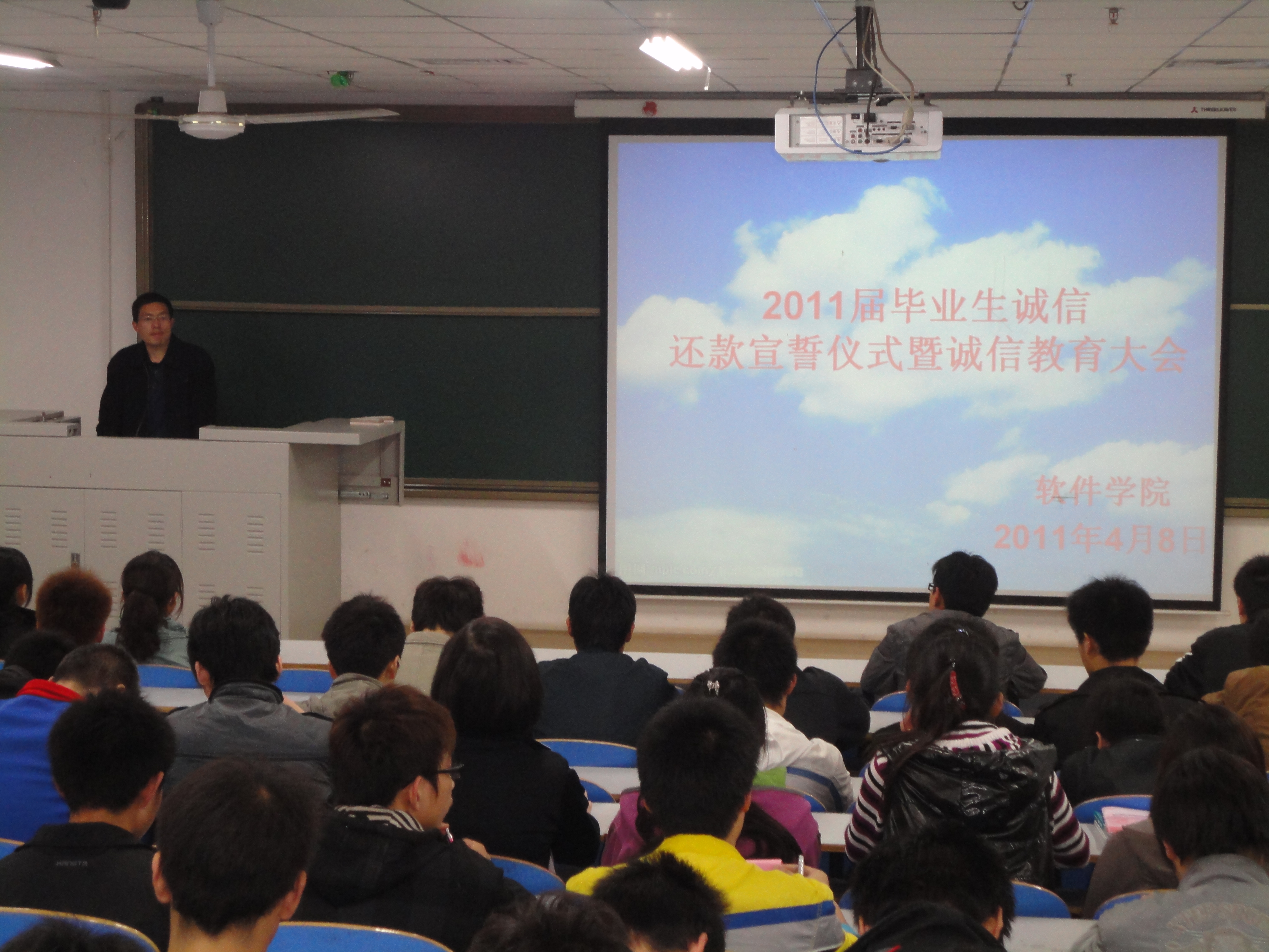为进一步加强国家助学贷款学生的诚信教育,软件学院于4月8日晚在科学校区电教楼301教室,举行了2011届贷款毕业生诚信教育暨诚信宣誓大会。软件学院党总支副书记武丰龙、辅导员老师及软件学院2011届贷款毕业生参加了会议。