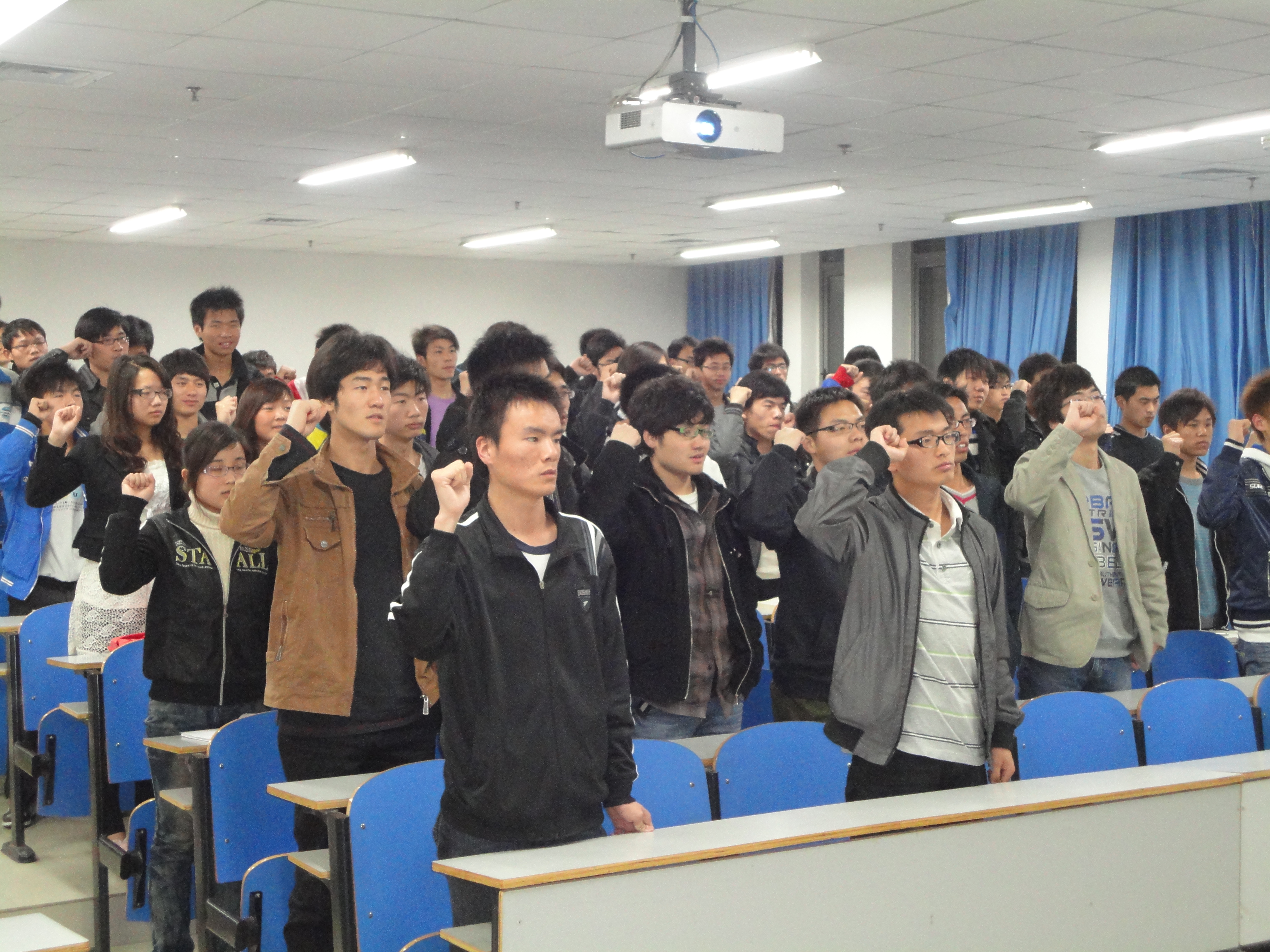 其次,负责贷款的常亮老师对提前还贷手续进行了介绍,并就同学们提出的一些问题给予解答。然后,与会的全体学生在领誓人的带领下进行了集体还贷宣誓。