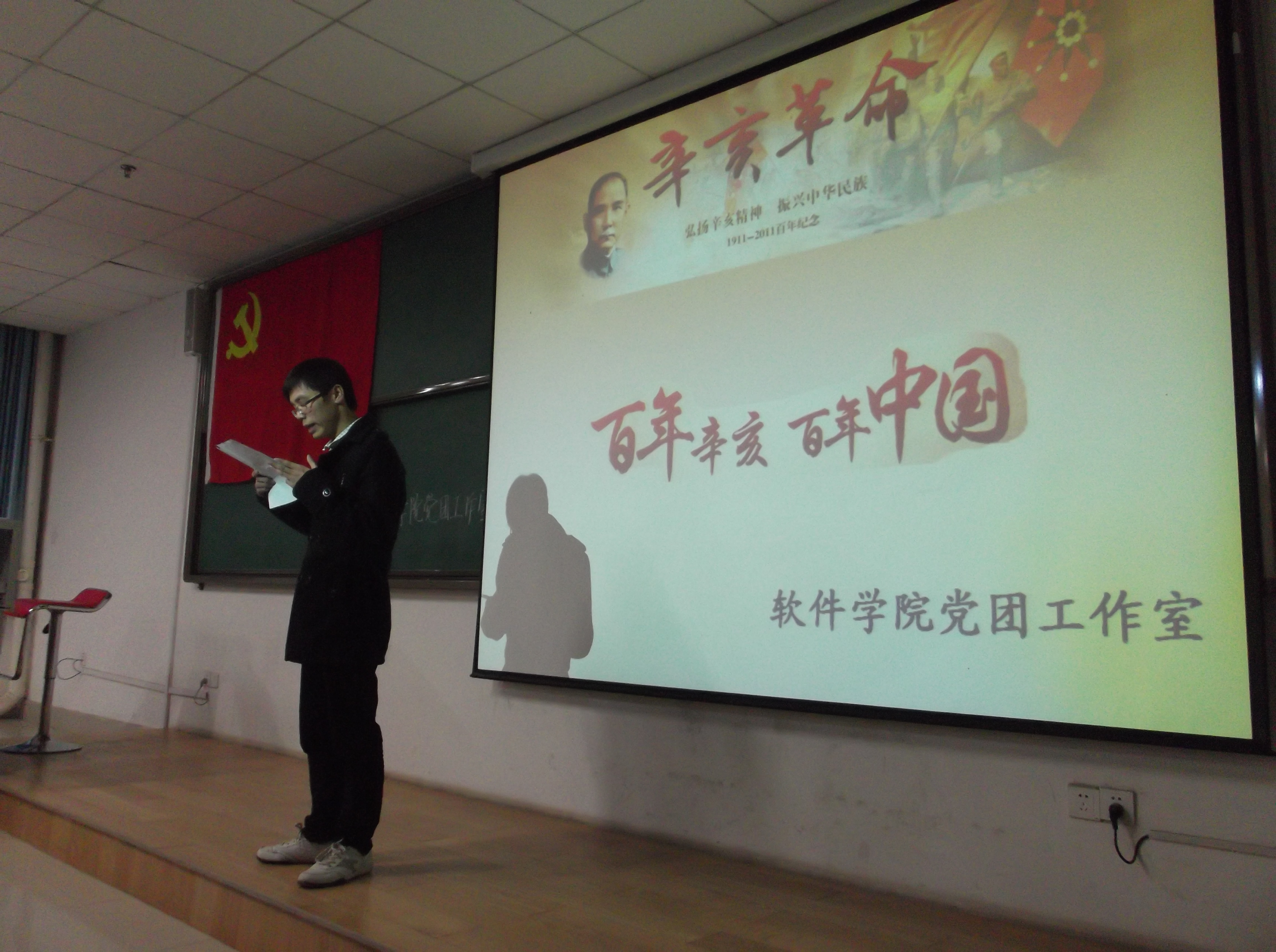 11月3日下午,软件学院在科学校区电教楼107举行以“纪念辛亥革命100周年”为主题的演讲及诗歌朗诵活动。